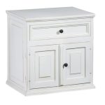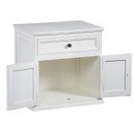 A white nightstand that is the perfect choice if you need something that goes with pretty much everything. A worn white finish that is clean but unpretentious. One drawer and a spacious cabinet for your storage needs. The clean transitional lines can easily work for anything from a modern, edgy design to a more feminine and relaxed farmhouse feel. One finished drawer with dark bronze hardware and a spacious cabinet for storage.