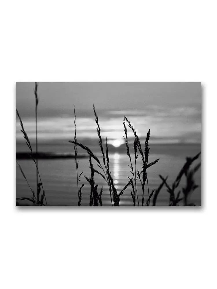 Reed In Front Of The Sunset On The Beach. Monochrome Picture, Taken On The Swedish Shore, Europe Unisex’s Gloss Poster.. Design by Bolni.