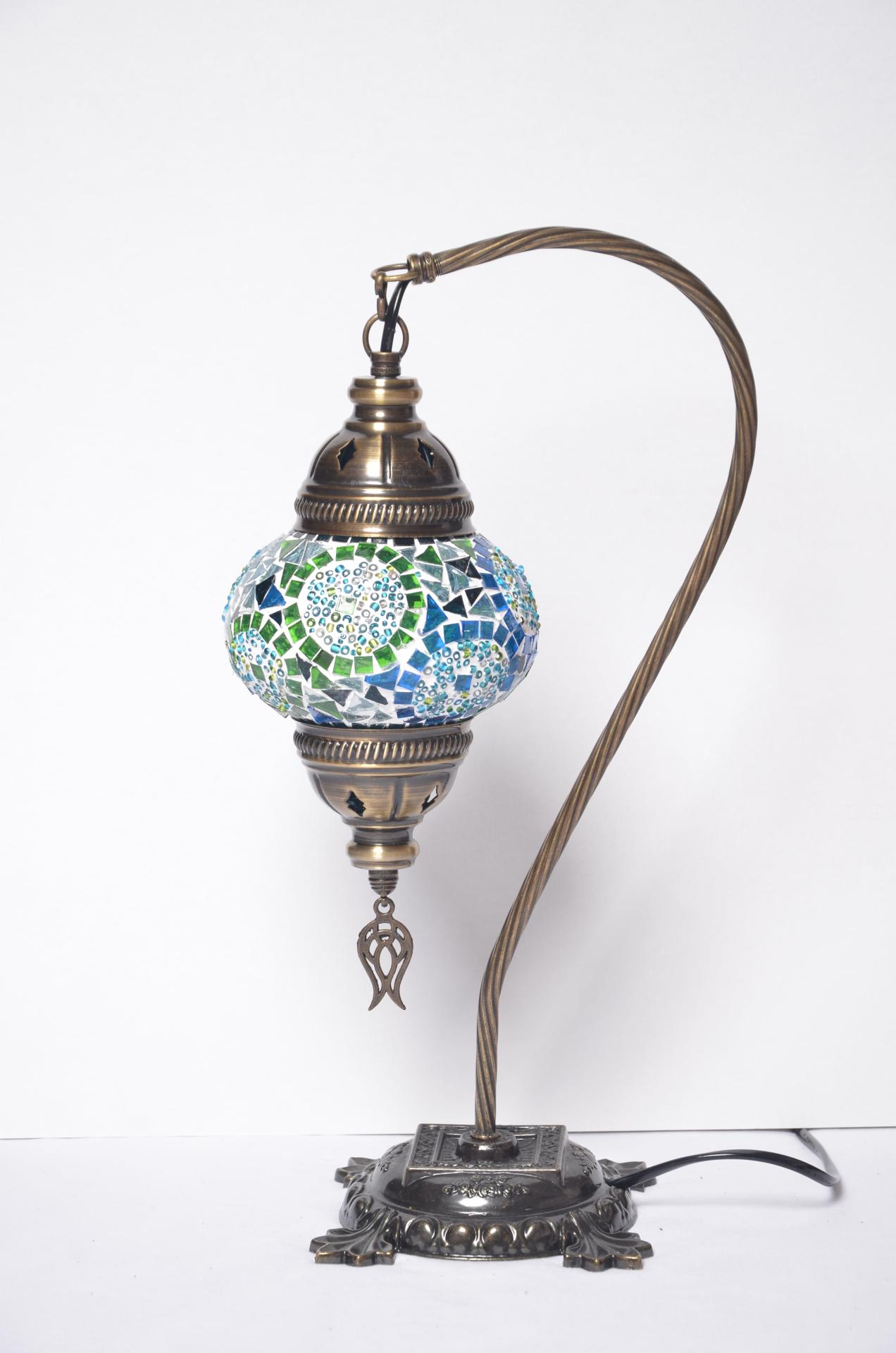 Turkish Swan Neck Mosaic Glass Handmade Decorative Table Lamps – Turquoise – Unique Custom Moroccan Lamp Shades